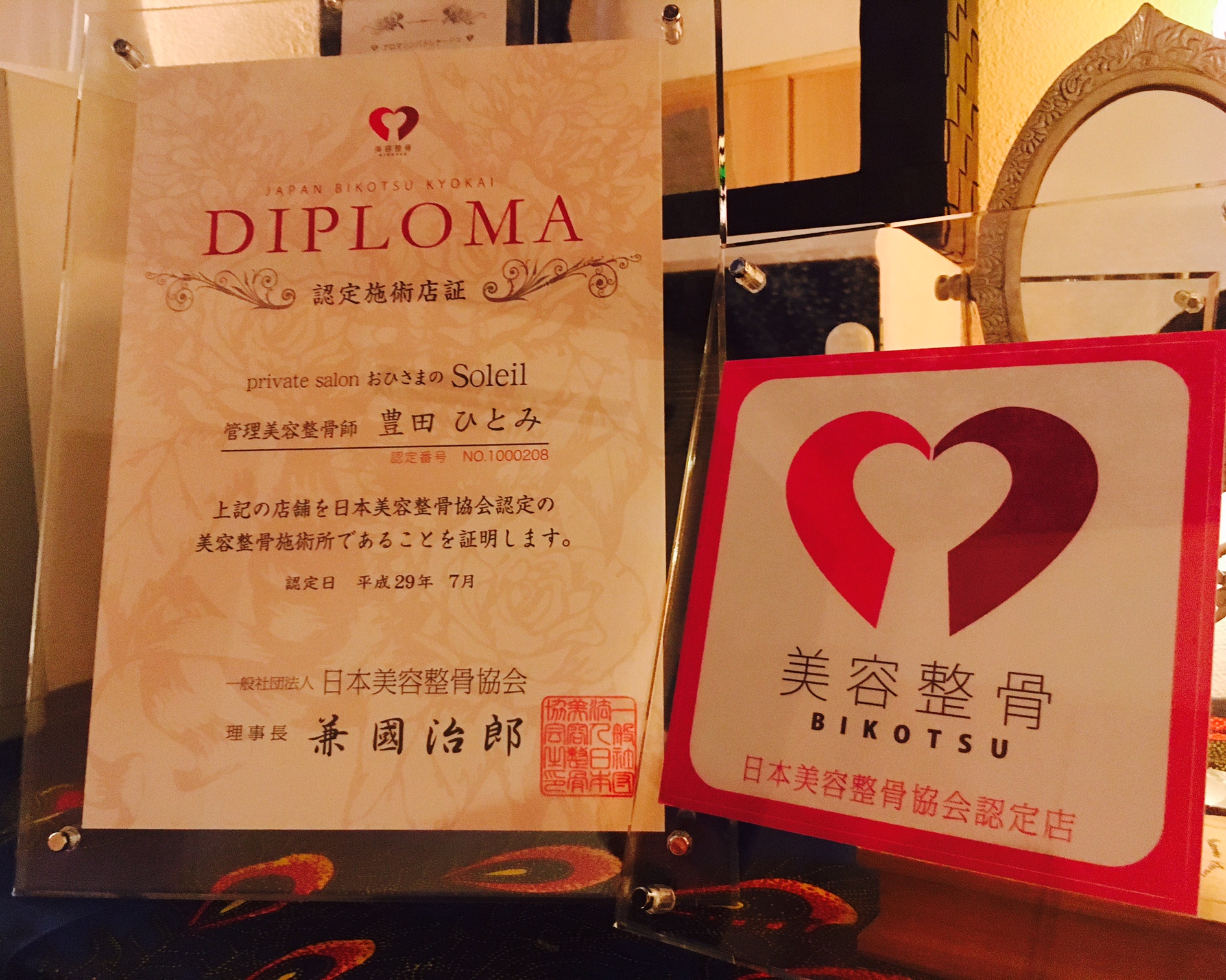 日本でも数少なく、岐阜では3人目となる、日本美容整骨協会認定の